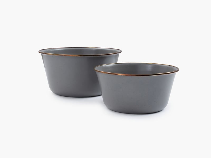 Le Enamel Nesting Bowl - Set van 2 est un incontournable pour votre collection de vaisselle! Ces bols de nid robustes ne sont pas seulement élégants, mais aussi très pratiques. L'ensemble se compose de deux bols dans une couleur gris ardoise cool qui s'harmonisent parfaitement avec tout décor de table sportif.