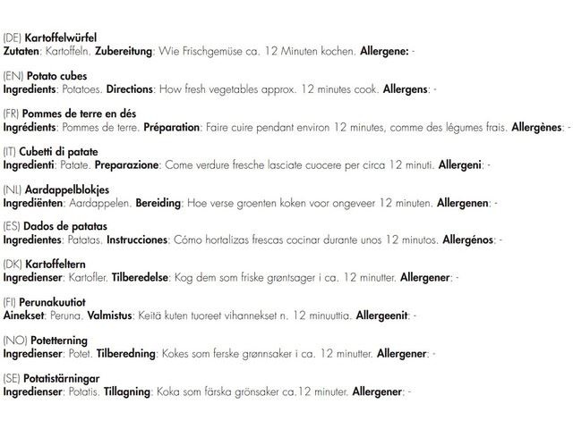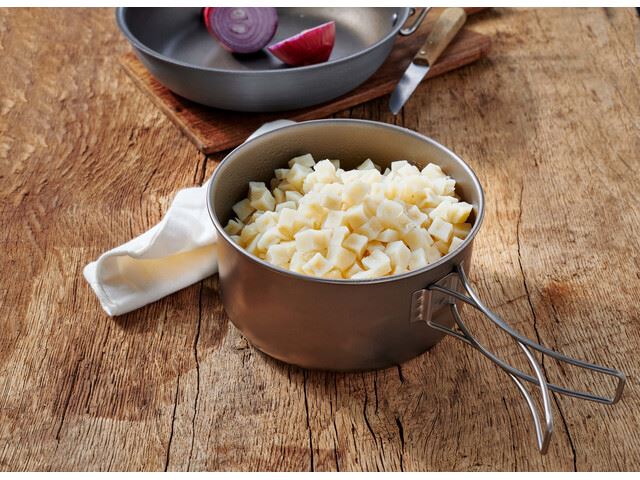 De speciale verpakking houdt de aardappelblokjes lekker vers en smaakvol, zelfs na lange tijd opslag. Dus je kunt er zeker van zijn dat elke hap net zo goed smaakt als de eerste.